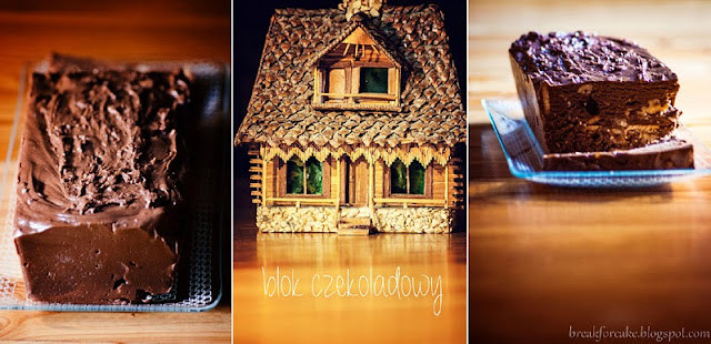 Dziś coś specjalnego dla wielbicieli czekolady, kakao i solidnych słodyczy: blok czekoladowy. W mojej wersji z orzechami włoskimi, herbatnikami i suszonymi owocami. Deser, który bardzo szybko się robi i można modyfikować w zależności od upodobań. Szczególnie polecany w tak mokre i chłodnie dni jak dziś.